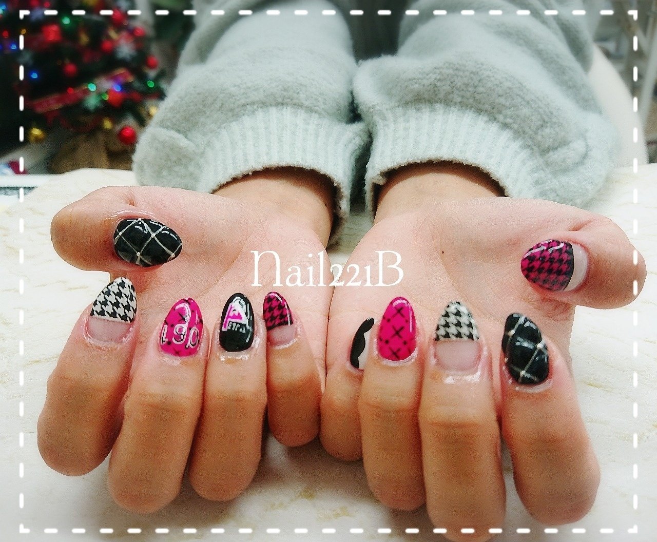 白 黒 ピンク ポップネイル ネイルデザイン集 ジェルネイルは大阪のアンジュール